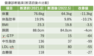 この結果から断酒の効果は絶大であることをあらためて確認することができました。