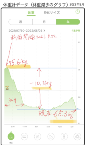 なんと、体重がマイナス10.3kg・体脂肪率がマイナス10.3%という結果になりました。その後も維持することができています。
