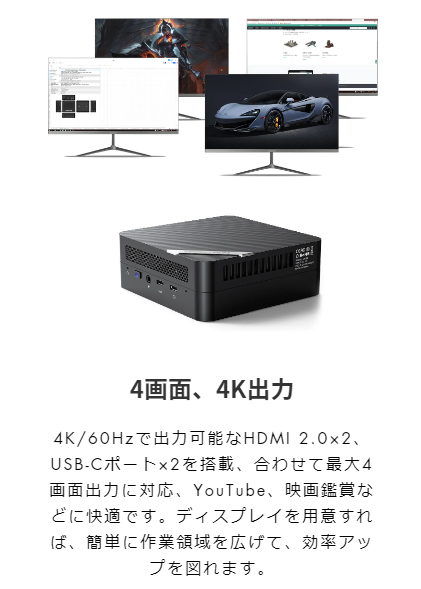 ディスプレイ をMAX4台も接続することができます。